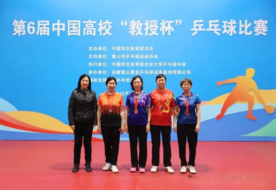 近日,第六届中国高校“教授杯”乒乓球比赛在安徽黄山市落下帷幕。我校退休老师陈黎教授凭借扎实的技术功底和稳定的临场发挥,最终夺得60-70周岁组女子单打、双打比赛“双冠”佳绩,为我校赢得了荣誉。