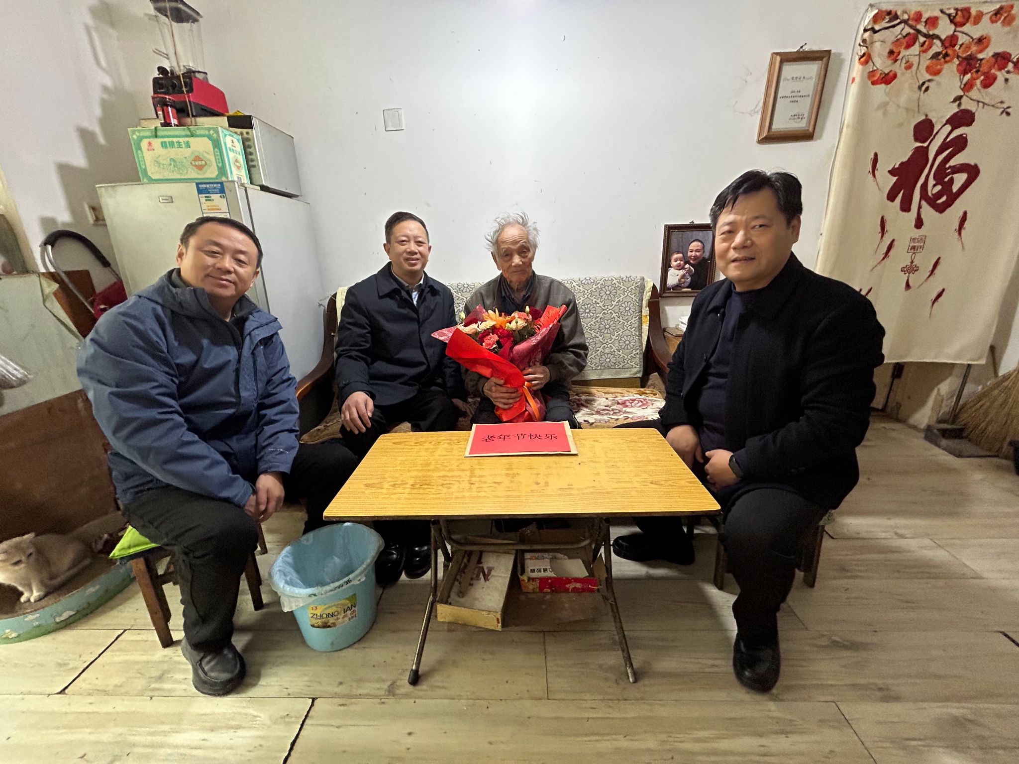 在石予丰老师家中,黄英维关切地询问了他的身体状况、日常生活和医疗保障等情况,细心叮嘱他注意季节变化,及时添衣保暖,保持愉悦心情。石老师及家人对校领导在百忙之中前来慰问表示由衷感谢,对学校长期给予的细致关怀倍感温暖。