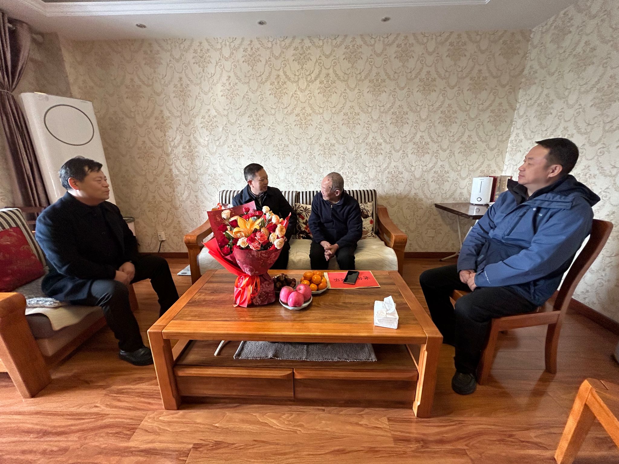 走访期间,黄英维亲切看望了宁文斌和石予丰两位离休老同志。在宁文斌老师家中,黄英维与他促膝交谈,详细介绍了学校近期在人才培养、科学研究、社会服务及校园建设等方面取得的新进展与新成效。虽已离休,宁老师依然心系学校发展,认真倾听介绍,为学校日新月异的变化深感欣慰,并高度评价了学校党委长期以来为离退休教职工办实事、解难题的务实举措,表示将一如既往地关注和支持学校工作,贡献桑榆之力。